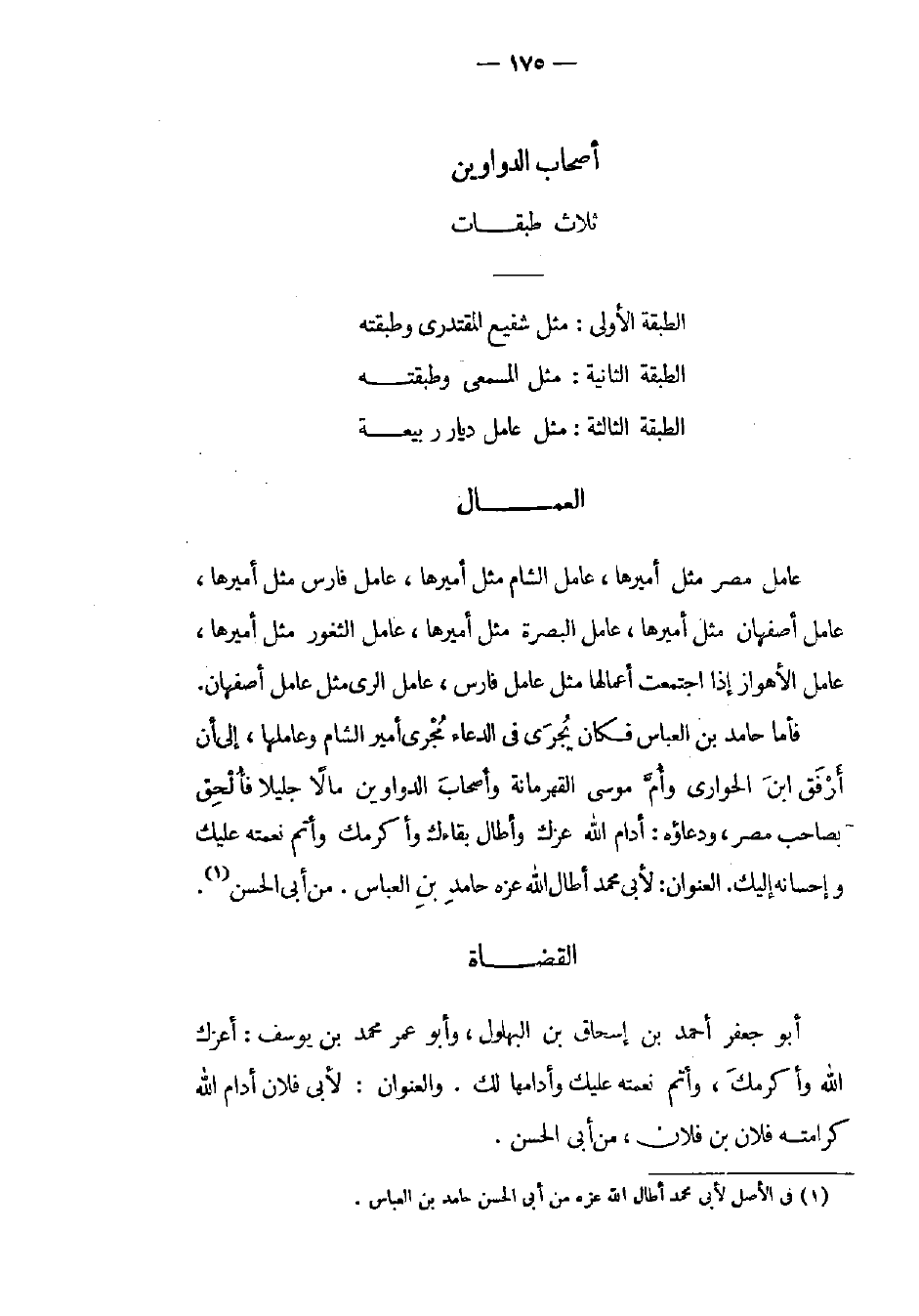 فأما حامد بن العباس فكان يجري في الدعاء مجرى أمير الشام وعاملها، إلى أن أرفق ابن الحواري وأم موسى القهرمانة وأصحاب الدواوين مالاً جليلاً فألحق بصاحب مصر، ودعاؤه: أدام الله عزك وأطال بقاءك وأكرمك وأتم نعمته عليك وإحسانه إليك. العنوان: لأبي محمد أطال الله عزه حامد بن العباس. من أبي الحسن