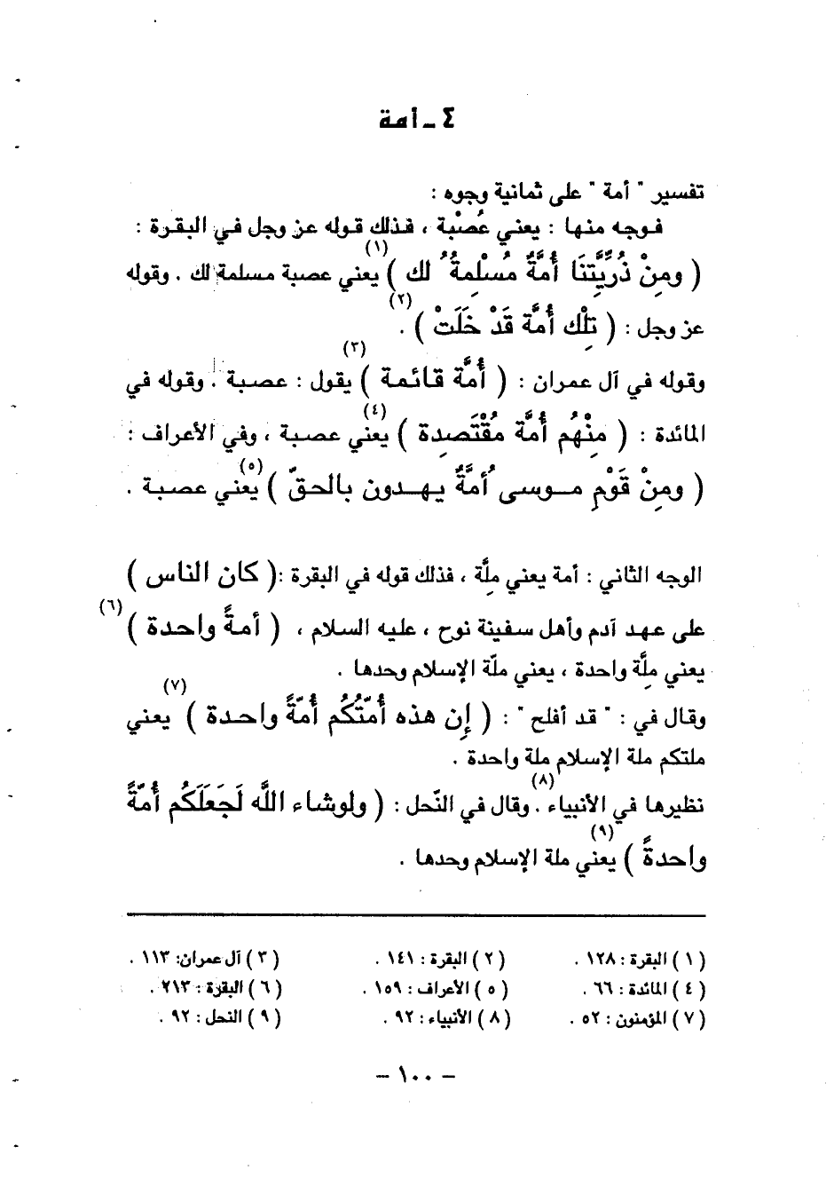 الوجه الثاني: أمة يعني ملّة، فذلك قوله في البقرة: كانَ النَّاسُ على عهد آدم وأهل سفينة نوح، عليه السلام، أُمَّةً واحِدَةً (¬6) يعني ملّة واحدة، يعني ملّة الإسلام وحدها.