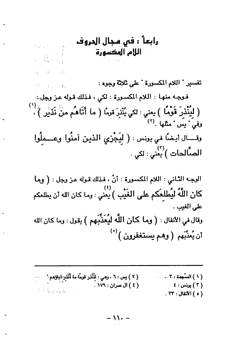الوجه الثاني: اللام المكسورة: أن، فذلك قوله عز وجل: وَما كانَ اللَّهُ لِيُطْلِعَكُمْ عَلَى الْغَيْبِ (¬4) يعني: وما كان الله أن يطلعكم على الغيب.