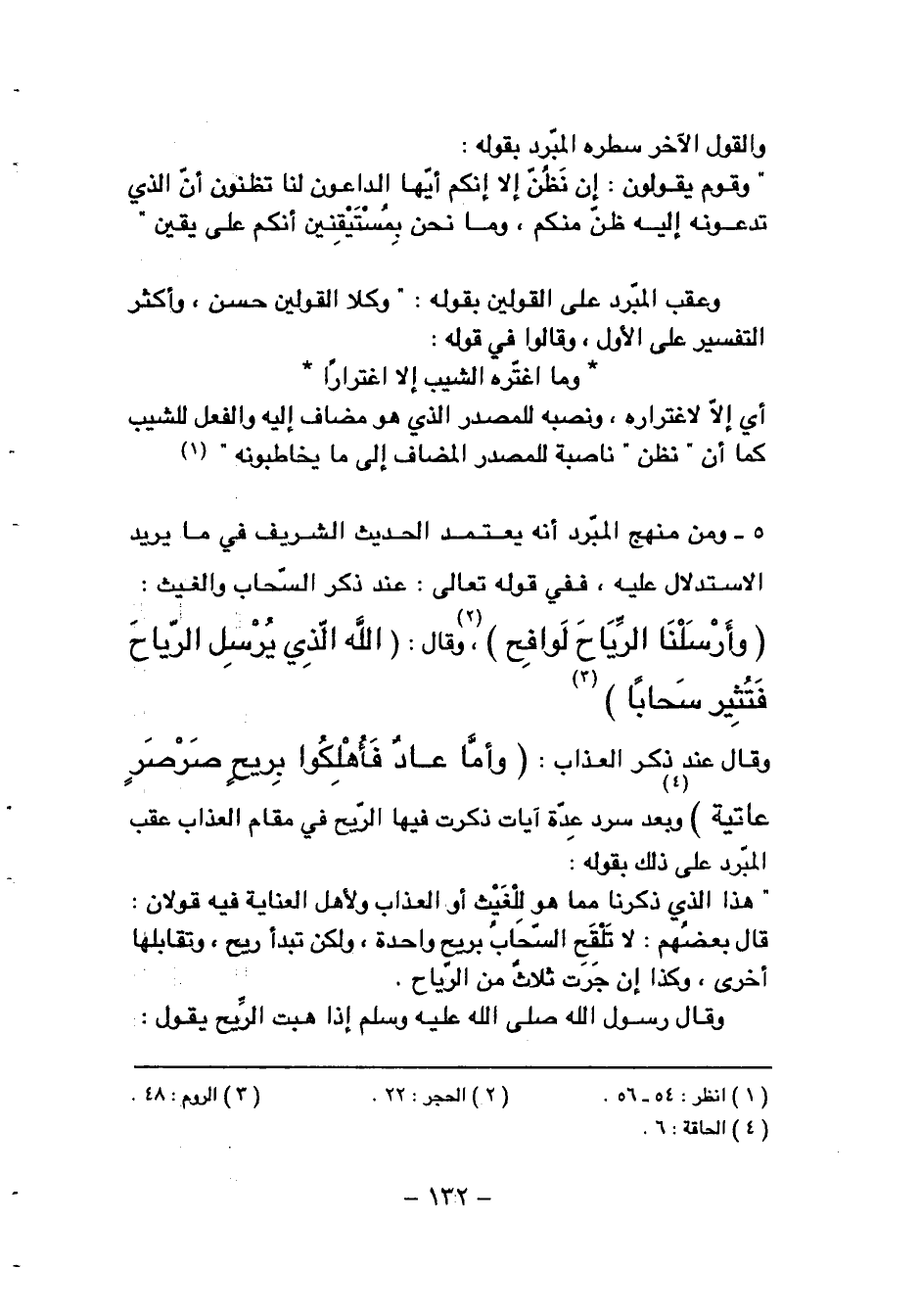 5 - ومن منهج المبرّد أنه يعتمد الحديث الشريف في ما يريد الاستدلال عليه، ففي قوله تعالى: عند ذكر السّحاب والغيث: