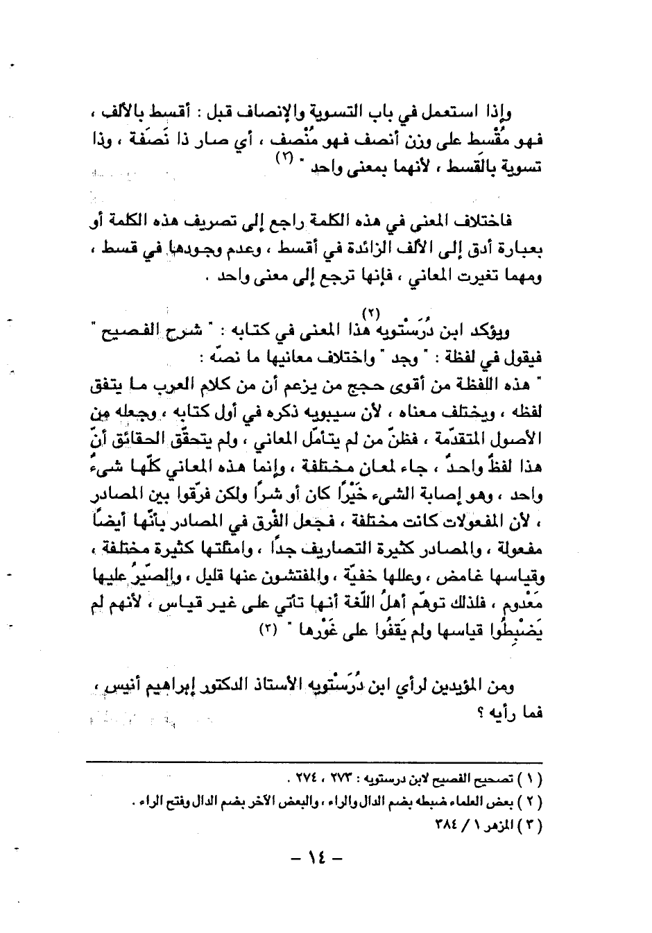 (¬1) تصحيح الفصيح لابن درستويه: 273، 274.