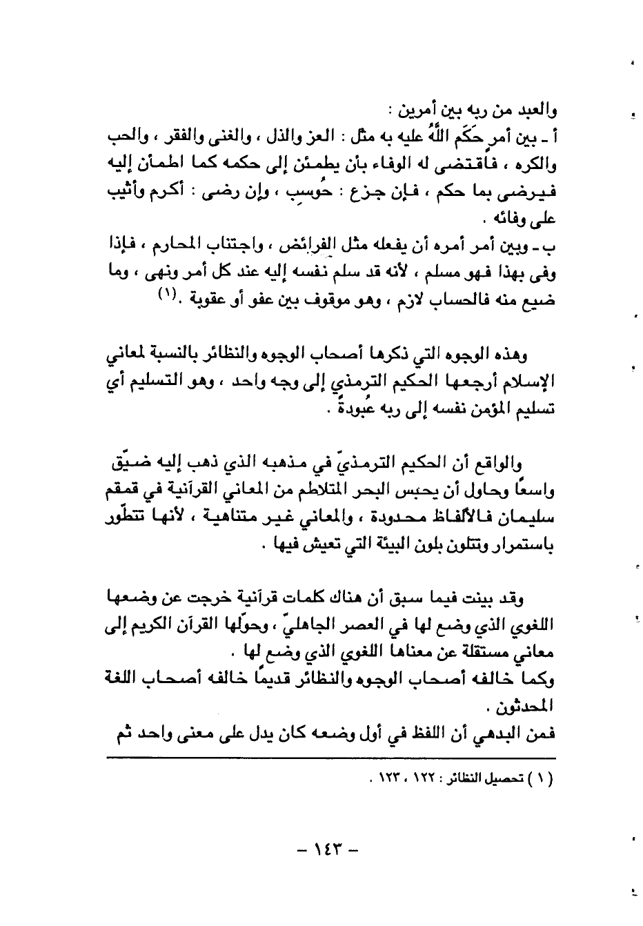 وهذه الوجوه التي ذكرها أصحاب الوجوه والنظائر بالنسبة لمعاني الإسلام أرجعها الحكيم الترمذي إلى وجه واحد، وهو التسليم أي تسليم المؤمن نفسه إلى ربه عبودة.