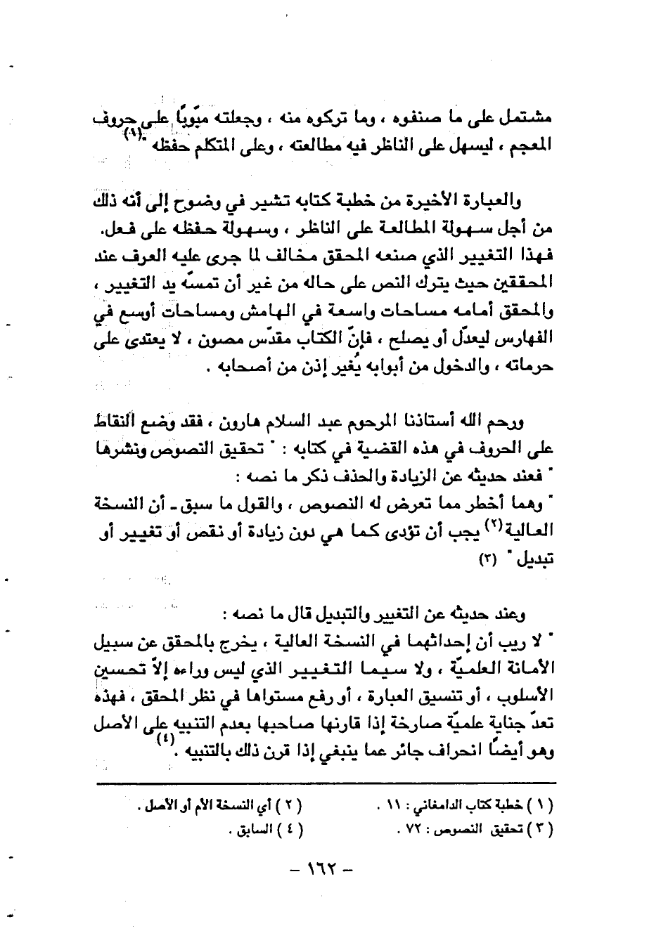 ورحم الله أستاذنا المرحوم عبد السلام هارون، فقد وضع النقاط على الحروف في هذه القضية في كتابه: «تحقيق النصوص ونشرها فعند حديثه عن الزيادة والحذف ذكر ما نصه:
