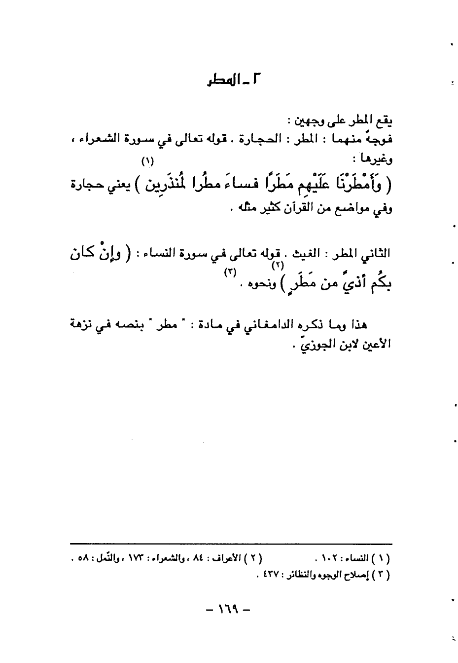 هذا وما ذكره الدامغاني في مادة: «مطر» بنصه في نزهة الأعين لابن الجوزيّ.
