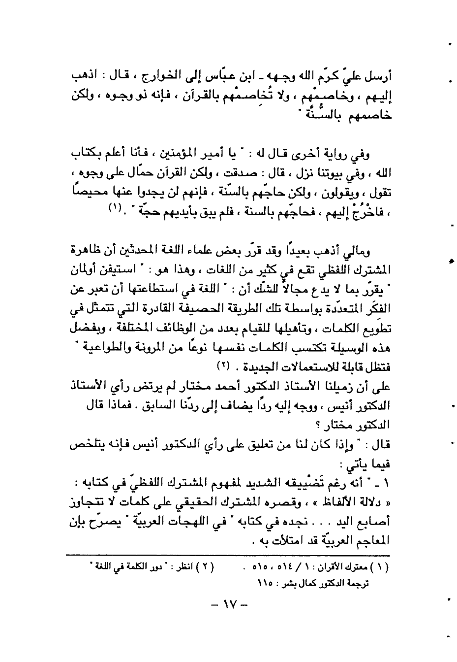 1 - «أنه رغم تضييقه الشديد لمفهوم المشترك اللفظيّ في كتابه: