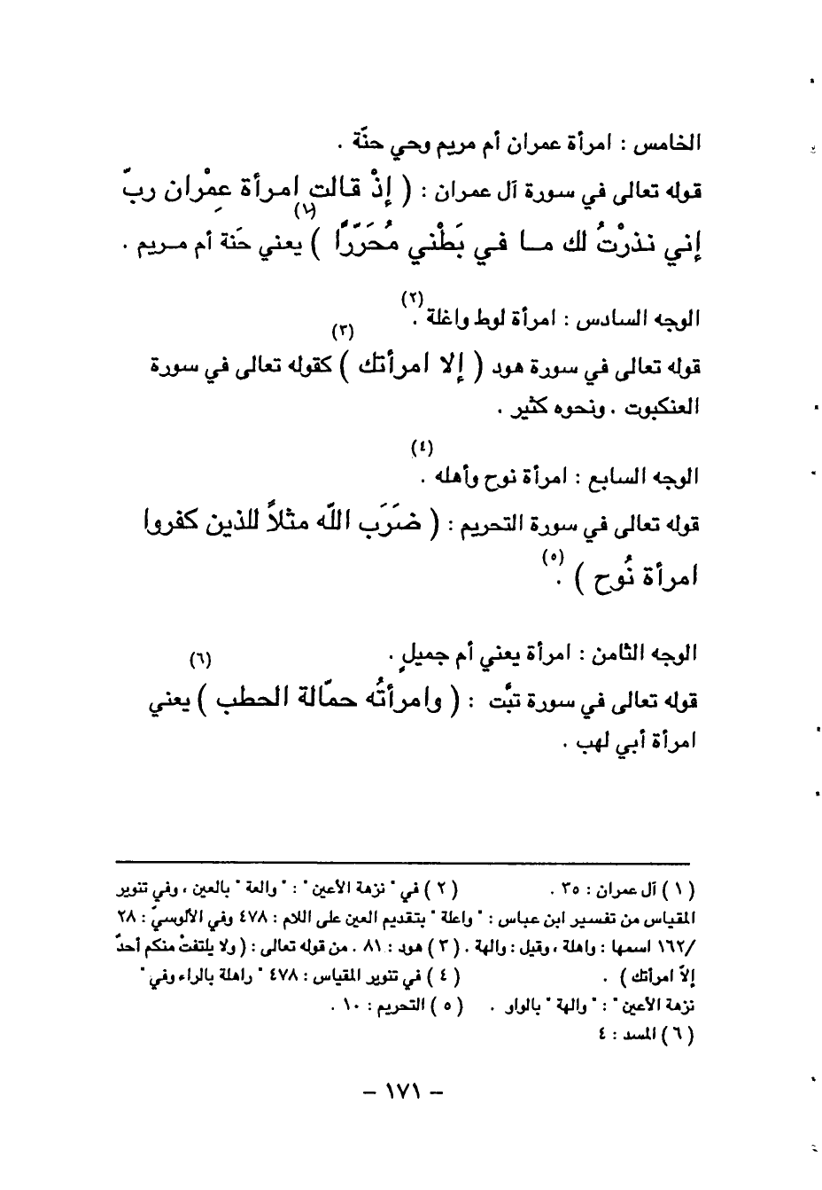 (¬2) في «نزهة الأعين»: «والعة» بالعين، وفي تنوير المقياس من تفسير ابن عباس: «واعلة» بتقديم العين على اللام: 478 وفي الألوسيّ: 28/ 162 اسمها: واهلة، وقيل: والهة.