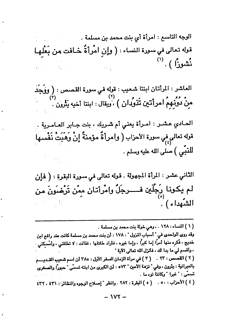 الثاني عشر: المرأة المجهولة. قوله تعالى في سورة البقرة: فَإِنْ لَمْ يَكُونا رَجُلَيْنِ فَرَجُلٌ وَامْرَأَتانِ مِمَّنْ تَرْضَوْنَ مِنَ الشُّهَداءِ. (¬5)