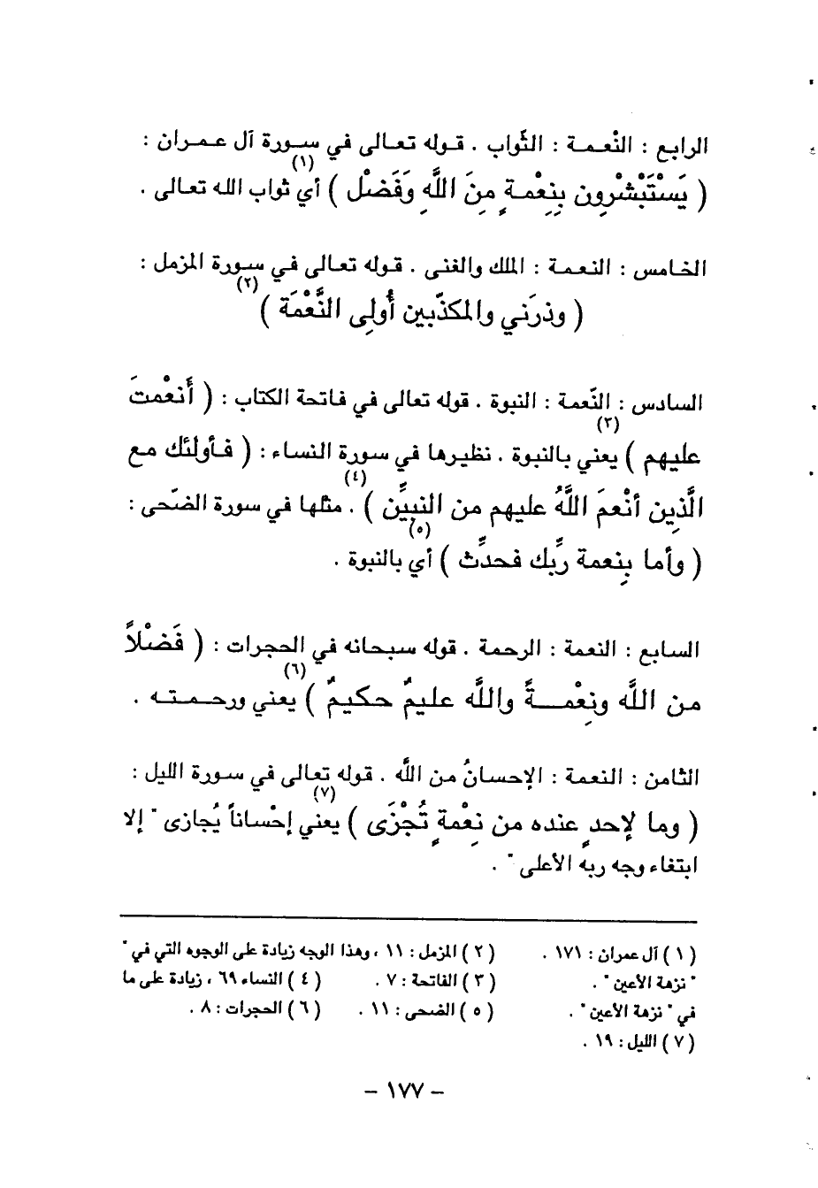 الثامن: النعمة: الإحسان من الله. قوله تعالى في سورة الليل: