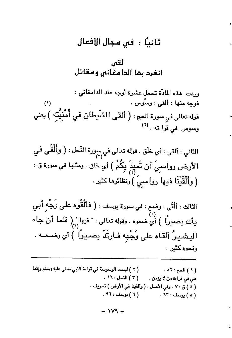 ثانيا: في مجال الأفعال لقى انفرد بها الدامغاني ومقاتل