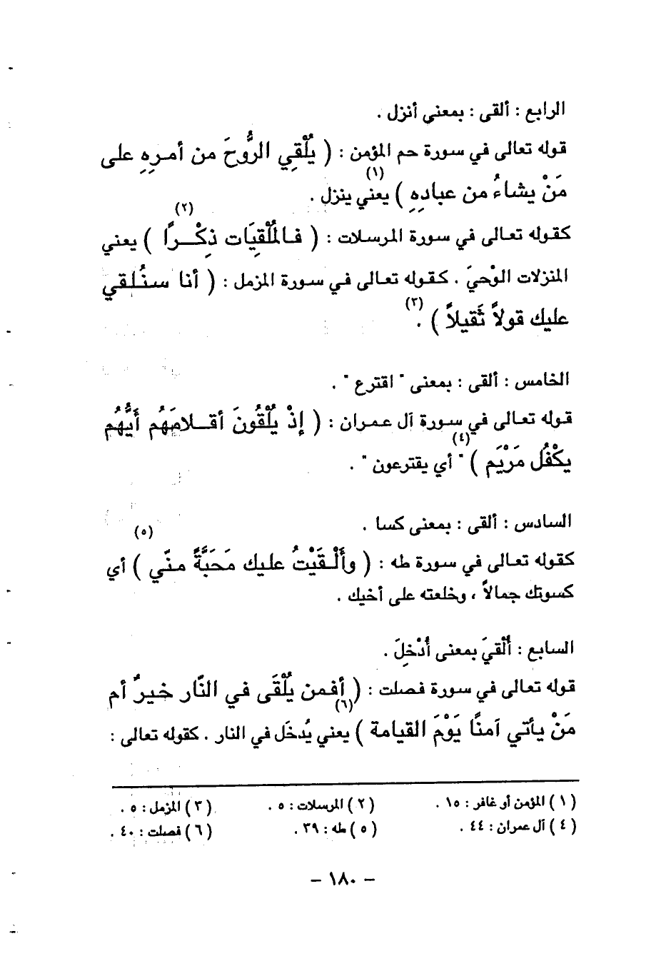 كقوله تعالى في سورة المرسلات: فَالْمُلْقِياتِ ذِكْراً (¬2) يعني المنزلات الوحي. كقوله تعالى في سورة المزمل: إِنَّا سَنُلْقِي عَلَيْكَ قَوْلًا ثَقِيلًا. (¬3)