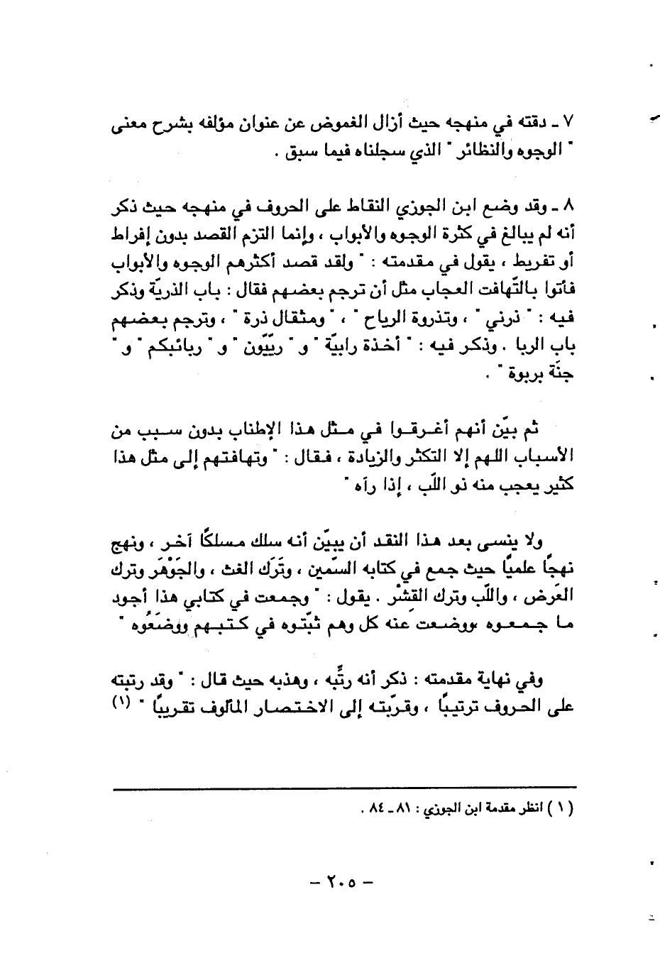 7 - دقته في منهجه حيث أزال الغموض عن عنوان مؤلفه بشرح معنى «الوجوه والنظائر» الذي سجلناه فيما سبق.
