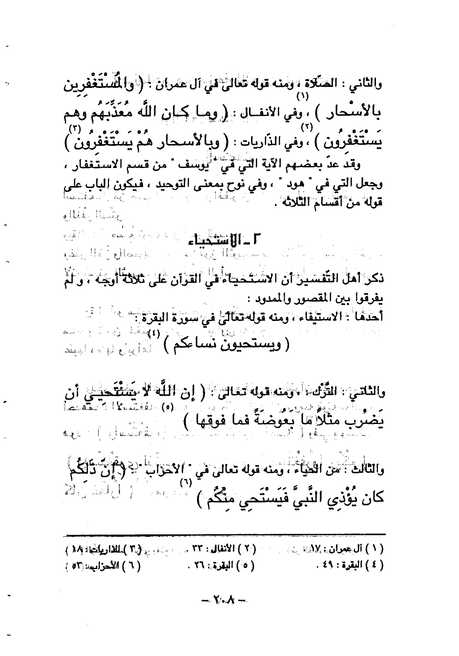 ذكر أهل التّفسير أن الاستحياء في القرآن على ثلاثة أوجه، ولم يفرقوا بين المقصور والممدود:
