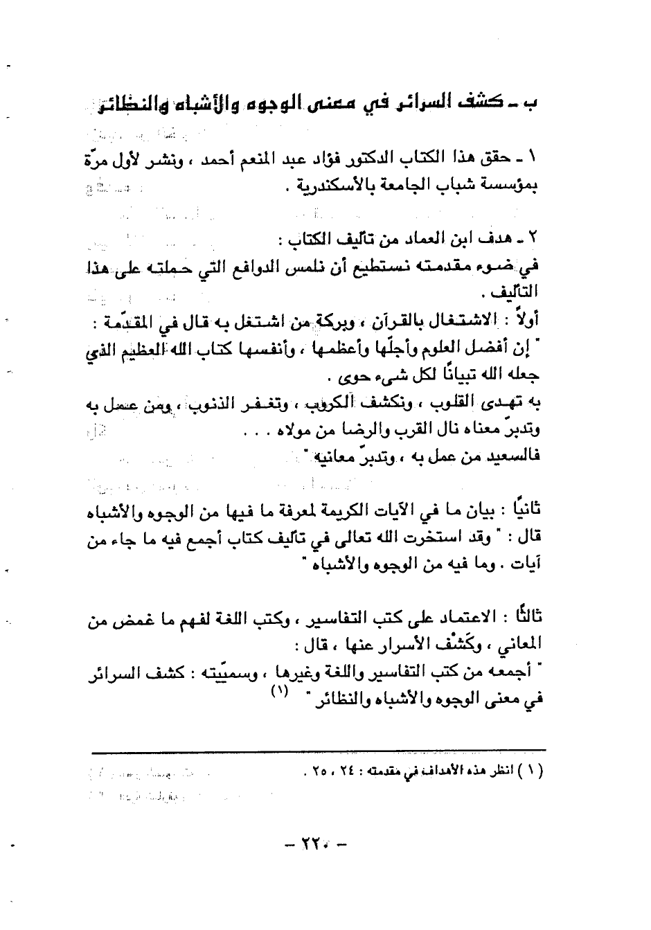 ب- كشف السرائر في معنى الوجوه والأشباه والنظائر