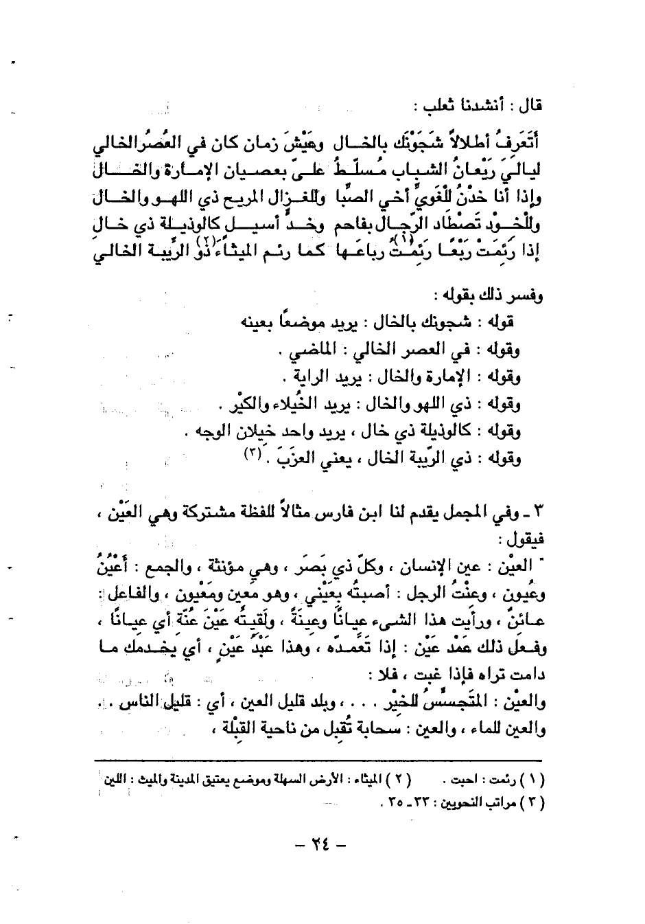 3 - وفي المجمل يقدم لنا ابن فارس مثالا للفظة مشتركة وهي العين، فيقول:
