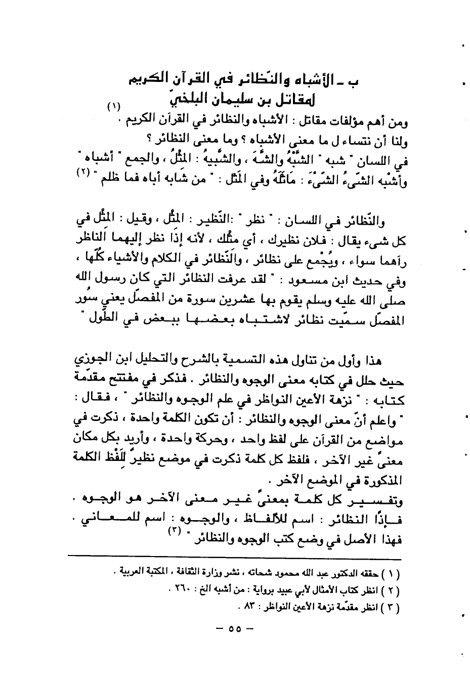 ب- الأشباه والنّظائر في القرآن الكريم لمقاتل بن سليمان البلخيّ