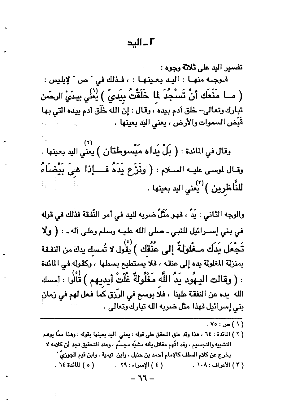(¬2) المائدة: 64، هذا وقد علق المحقق على قوله: يعني اليد بعينها بقوله: وهذا ممّا يوهم التشبيه والتجسيم، وقد اتّهم مقاتل بأنه مشبّه مجسّم، وعند التحقيق نجد أن كلامه لا يخرج عن كلام السلف كالإمام أحمد بن حنبل، وابن تيمية، وابن قيم الجوزيّ.
