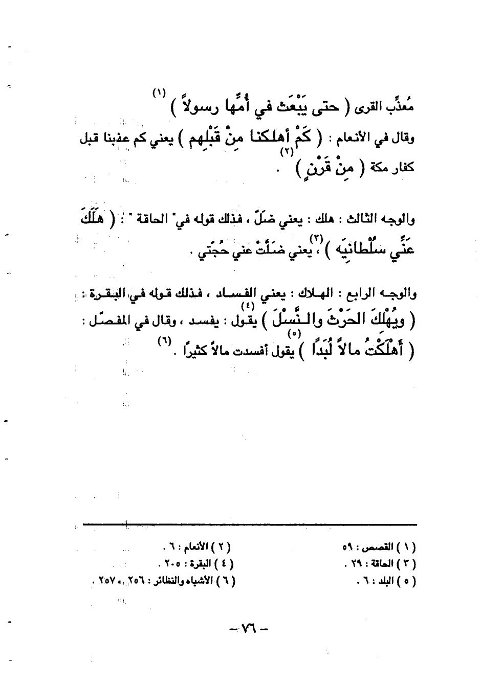 والوجه الثالث: هلك: يعني ضلّ، فذلك قوله في «الحاقة»: هَلَكَ عَنِّي سُلْطانِيَهْ، (¬3) يعني ضلّت عني حجّتي.
