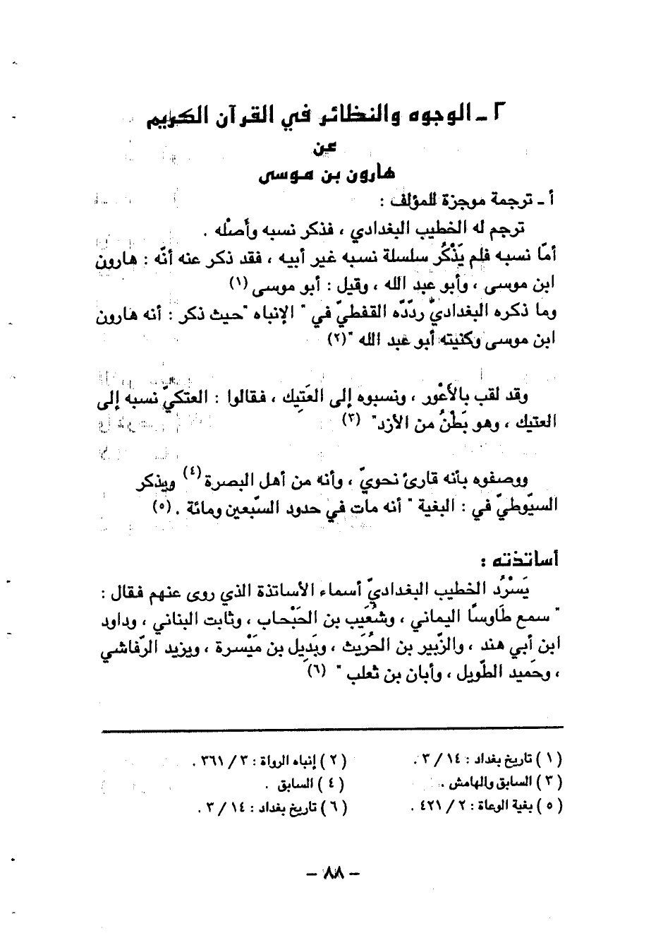 2 - الوجوه والنظائر في القرآن الكريم عن هارون بن موسى