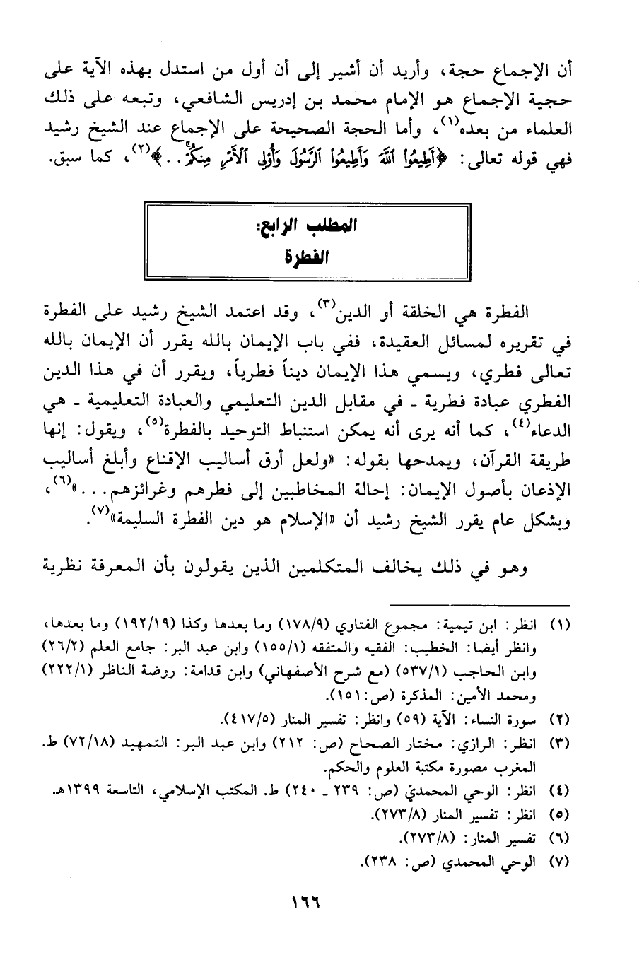 أن الإجماع حجة، وأريد أن أشير إلى أن أول من استدل بهذه الآية على حجية الإجماع هو الإمام محمد بن إدريس الشافعي، وتبعه على ذلك العلماء من بعده 1، وأما الحجة الصحيحة على الإجماع عند الشيخ رشيد فهي قوله تعالى: {أَطِيعُوا اللَّهَ وَأَطِيعُوا الرَّسُولَ وَأُولِي الأَمْرِ مِنْكُمْ} 2، كما سبق.