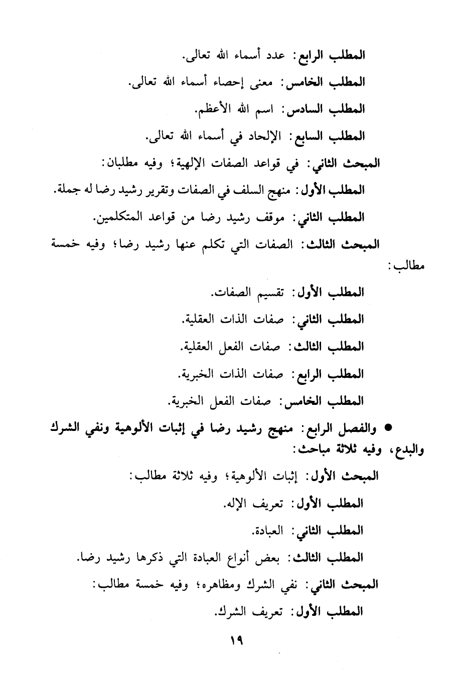 المبحث الثالث: الصفات التي تكلم عنها رشيد رضا؛ وفيه خمسة مطالب: