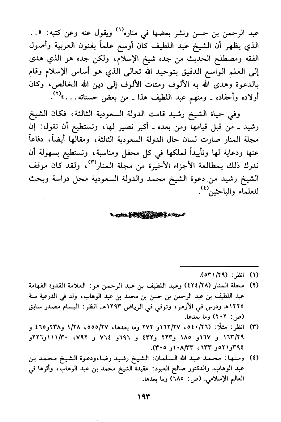 2 مجلة المنار (28/ 424) وعبد اللطيف بن عبد الرحمن هو: العلامة القدوة الفهامة عبد اللطيف بن عبد الرحمن بن حسن بن محمد بن عبد الوهاب، ولد في الدرعية سنة 1225هـ ودرس في الأزهر، وتوفي في الرياض 1293هـ. انظر: البسام مصدر سابق (ص: 202) وما بعدها