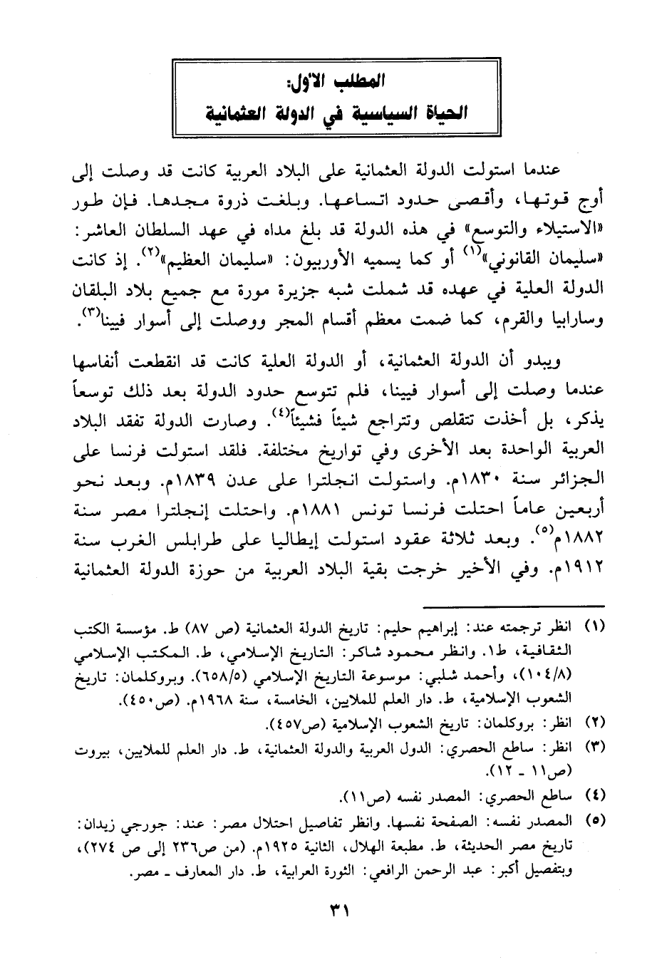 3 انظر: ساطع الحصري: الدول العربية والدولة العثمانية، ط. دار العلم للملايين، بيروت (ص11ـ 12) .