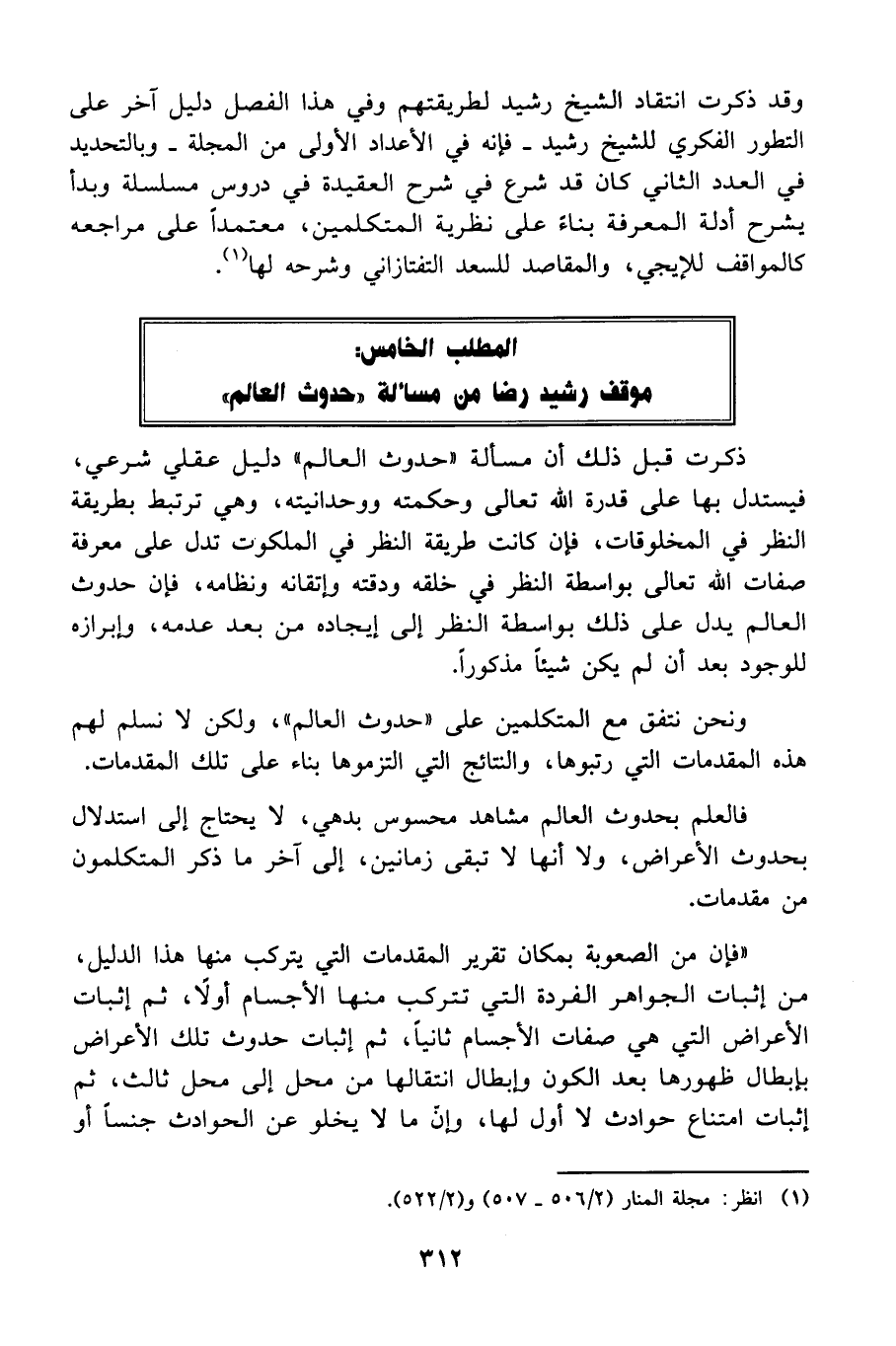 المطلب الخامس: موقف رشيد رضا من مسألة "حدوث العالم":