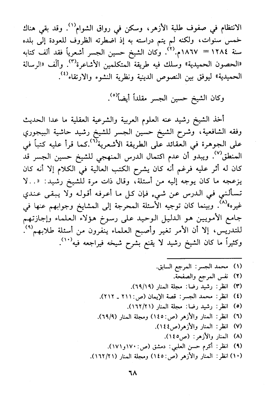 وكان الشيخ حسين الجسر مقلداً أيضاً 5.