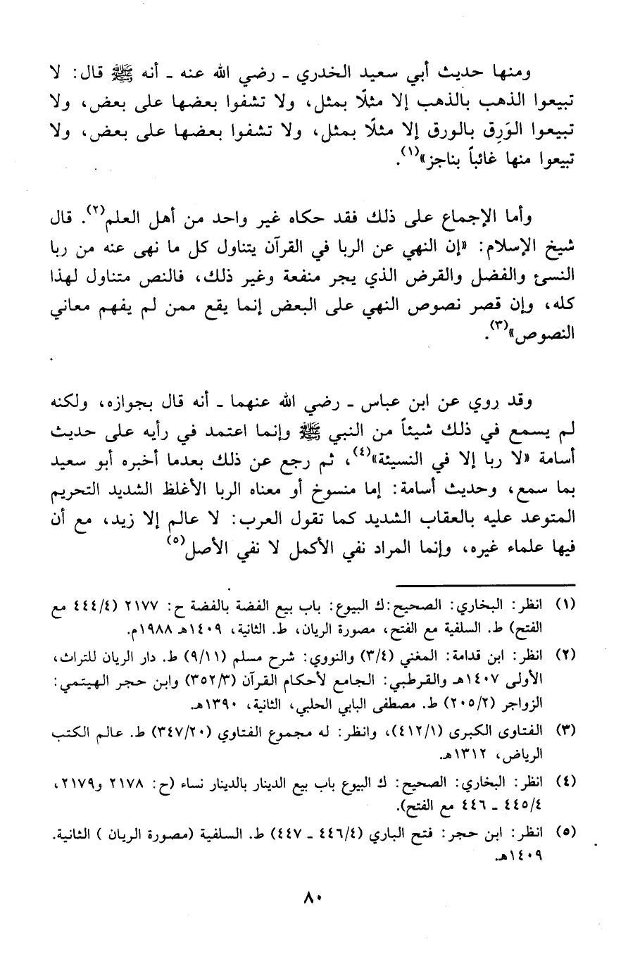 4 انظر: البخاري: الصحيح: ك البيوع باب بيع الدينار بالدينار نساء (ح: 2178 و2179، 4/ 445ـ 446 مع الفتح)