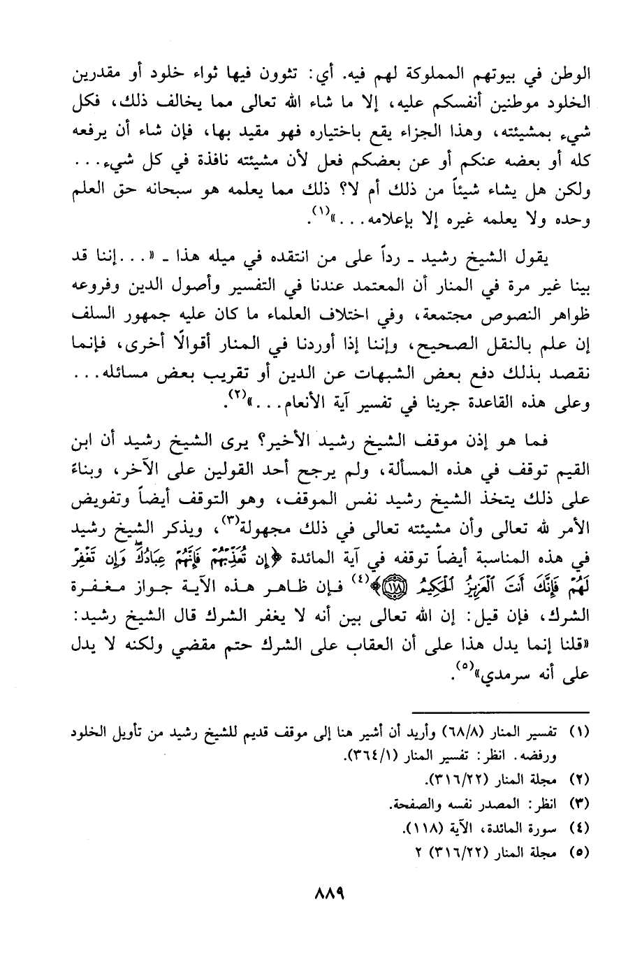 1 تفسير المنار (8/ 68) وأريد أن أشير هنا إلى موقف قديم للشيخ رشيد من تأويل الخلود ورفضه. انظر: تفسير المنار (1/ 364)