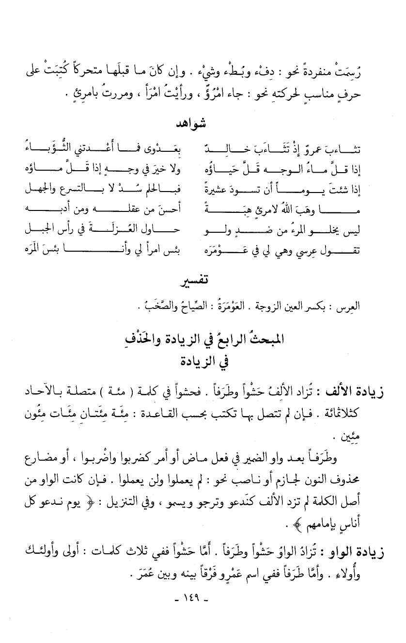 زيادة الواو: تزادُ الواو حشواً وطرفاً. أما حشواً ففي ثلاث كلمات: أولى وأولئك وأولاء. وأما طرفا ففي اسم عمرو وفرقا بينه وبين عُمَرَ.