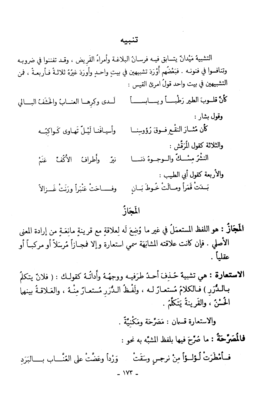 التشبيه ميدان يتسابق فيه فرسان البلاغة وأمراء القريض، وقد تفننوا في ضروبه وتنافسوا في فنونه. فبعضهم أورد تشبيهين في بيت واحد وأورد غيره ثلاثة فأربعة، فمن التشبيهين في بيت واحد قول امرئ القيس: