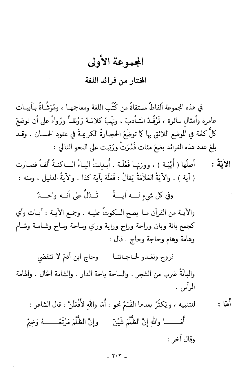 في هذه المجموعة ألفاظ مستقاة من كتب اللغة ومعاجمها، وموشاة بأبيات عامرة وأمثال سائرة، ترفد المتأدب، وتهب كلامهُ رونقاً ورواء على أن توضع كل كلمة الموضع اللائق بها كما توضع الحجارة الكريمة في عقود الحسان. وقد بلغ عدد هذه الفرائد بضع مئات فسرت ورتبت على النحو التالي: