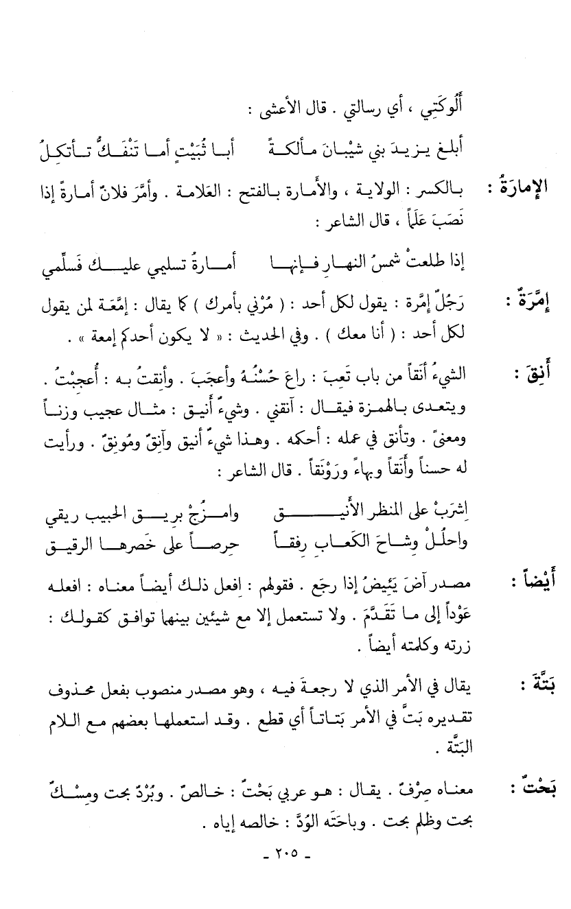 بتةَ: يقال في الأمر الذي لا رجعة فيه، وهو مصدر منصوب بفعل محذوف تقديره بت في الأمر بتاتا أي قطع. وقد استعملها بعضهم مع اللام البتة.