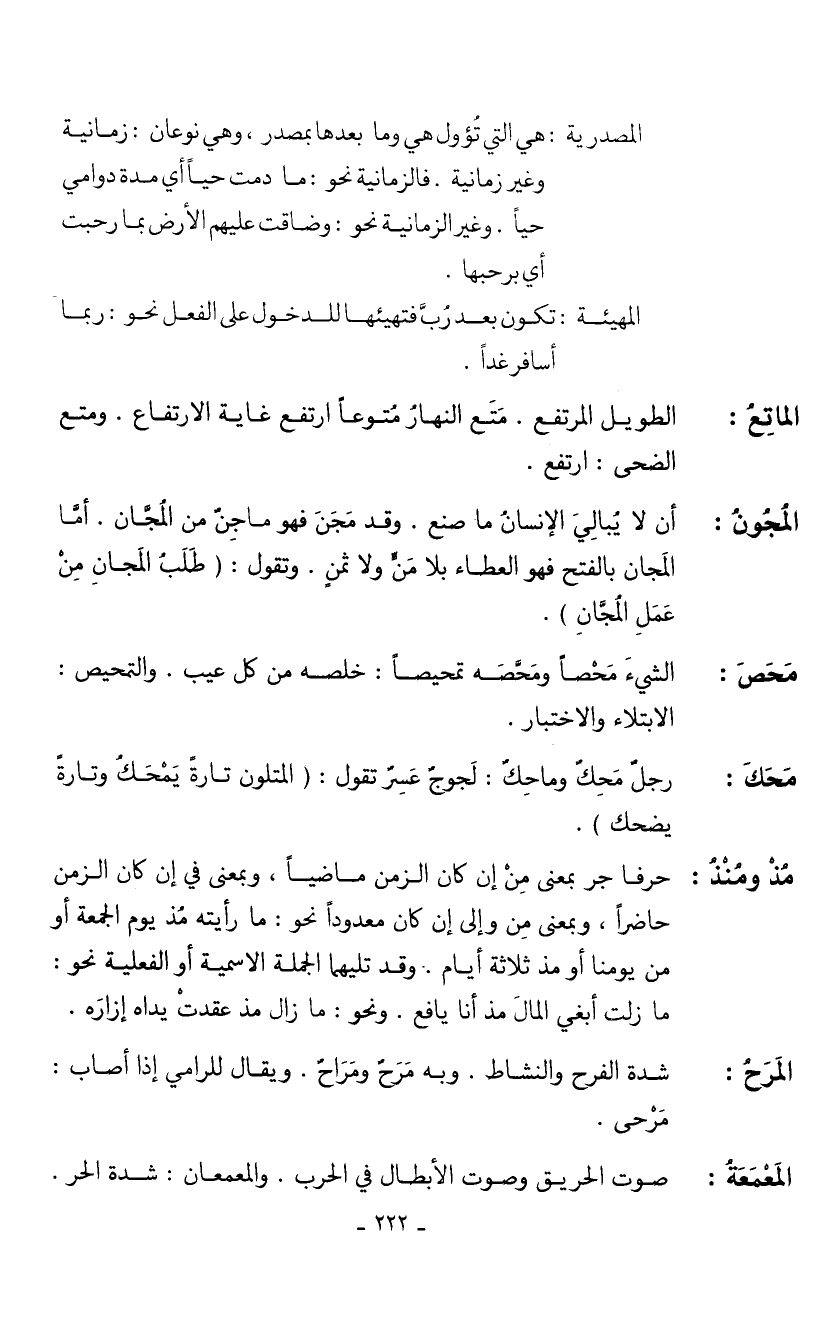 مُذ ومنذُ: حرفا جر بمعنى من إن كان الزمن ماضيا، وبمعنى في إن كان الزمن حاضراً، وبمعنى من وإلى إن كان معدوداً نحو: ما رأيته مذ يوم الجمعة أو من يومنا أو مذ ثلاثة أيام. وقد تليهما الجملة الاسمية أو الفعلية نحو: ما زلت أبغي المال مذ أنا يافع. ونحو: ما زال مذ عقدت يداه إزاءه.