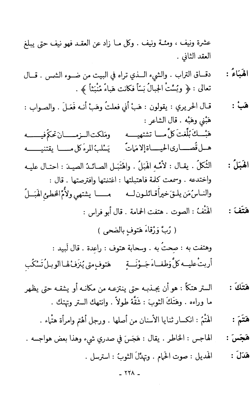 هتفَ: الهتفُ: الصوت. هتفت الحمامة. قال أبو فراس: