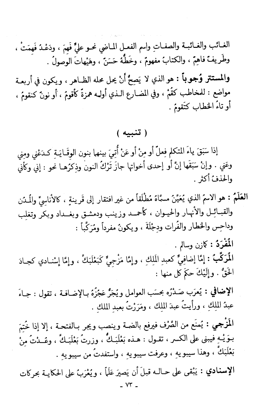 المركب: إما إضافي كعبد الملك، وإذا مزجي كبعلبك، وإذا إسنادي كجادَ الحق. وإليلك حكم كل منها: