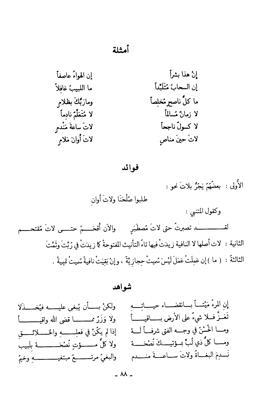 الثانية: لات أصلها لا النافية زيدت فيها تاء التأنيث المفتوحة كما زيدت في ربت وثمت