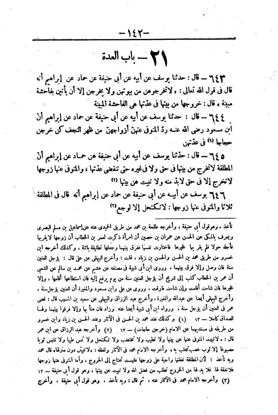 ٦٤٤ - قَالَ: حَدَّثَنَا يُوسُفُ عَنْ أَبِيهِ عَنْ أَبِي حَنِيفَةَ، عَنْ حَمَّادٍ، عَنْ إِبْرَاهِيمَ، أَنَّ ابْنَ مَسْعُودٍ رَضِيَ اللَّهُ عَنْهُ «رَدَّ الْمُتَوَفَّى عَنْهُنَّ أَزْوَاجُهُنَّ مِنْ ظَهْرِ النَّجَفِ، كُنَّ خَرَجْنَ حُجَّاجًا فِي عِدَّتِهِنَّ»