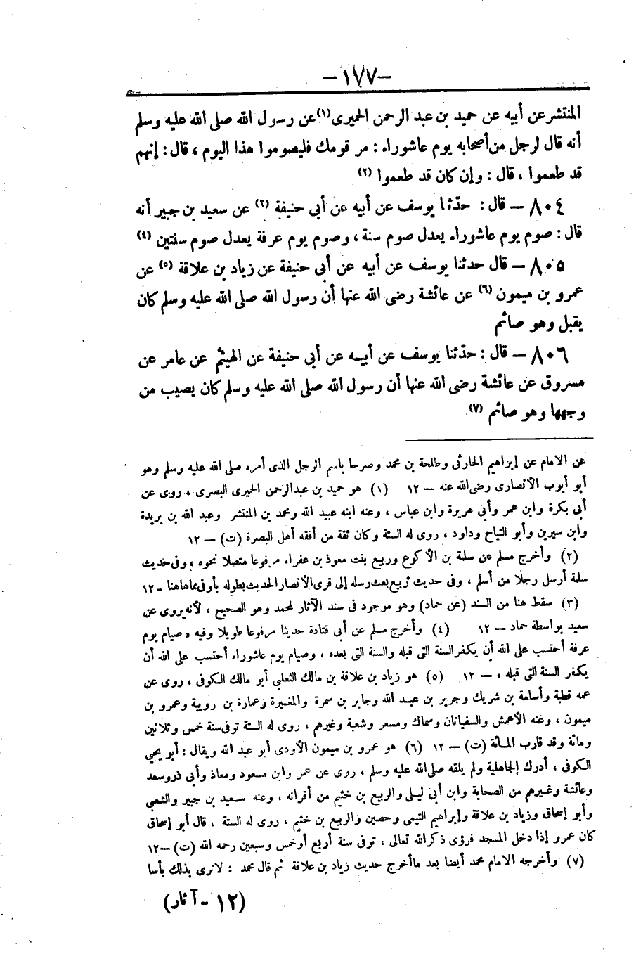 ٨٠٤ - قَالَ: حَدَّثَنَا يُوسُفُ عَنْ أَبِيهِ عَنْ أَبِي حَنِيفَةَ، عَنْ سَعِيدِ بْنِ جُبَيْرٍ، أَنَّهُ قَالَ: «صَوْمُ يَوْمِ عَاشُورَاءَ يَعْدِلُ صَوْمَ سَنَةٍ، وَصَوْمُ يَوْمِ عَرَفَةَ يَعْدِلُ صَوْمَ سَنَتَيْنِ»