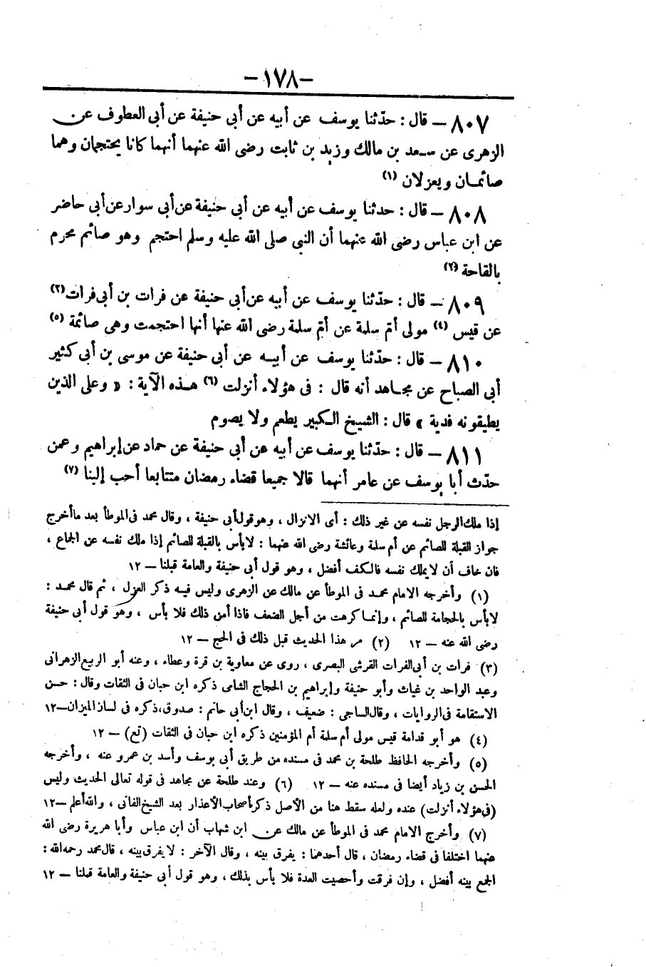 ٨٠٧ - قَالَ: حَدَّثَنَا يُوسُفُ عَنْ أَبِيهِ عَنْ أَبِي حَنِيفَةَ، عَنْ أَبِي الْعَطُوفِ، عَنِ الزُّهْرِيِّ، عَنْ سَعْدِ بْنِ مَالِكٍ، وَزَيْدِ بْنِ ثَابِتٍ رَضِيَ اللَّهُ عَنْهُمَا أَنَّهُمَا «كَانَا يَحْتَجِمَانِ وَهُمَا صَائِمَانِ وَيَعْزِلَانِ»