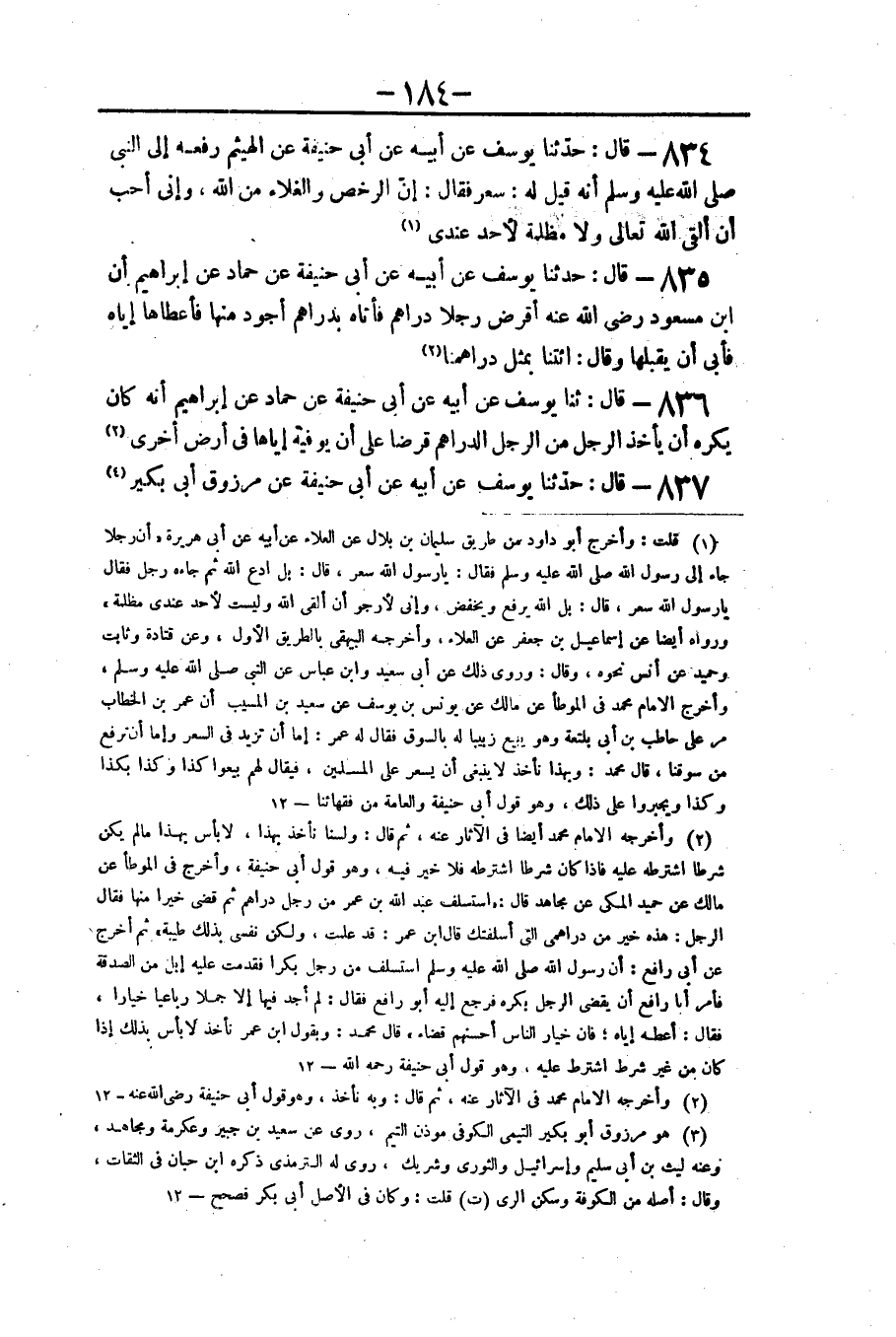 ٨٣٥ - قَالَ: حَدَّثَنَا يُوسُفُ عَنْ أَبِيهِ عَنْ أَبِي حَنِيفَةَ، عَنْ حَمَّادٍ، عَنْ إِبْرَاهِيمَ، أَنَّ ابْنَ مَسْعُودٍ رَضِيَ اللَّهُ عَنْهُ أَقْرَضَ رَجُلًا دَرَاهِمَ، فَأَتَاهُ بِدَرَاهِمَ أَجْوَدَ مِنْهَا فَأَعْطَاهَا إِيَّاهُ فَأَبَى أَنْ يَقْبَلَهَا وَقَالَ: «ائْتِنَا بِمِثْلِ دَرَاهِمِنَا»