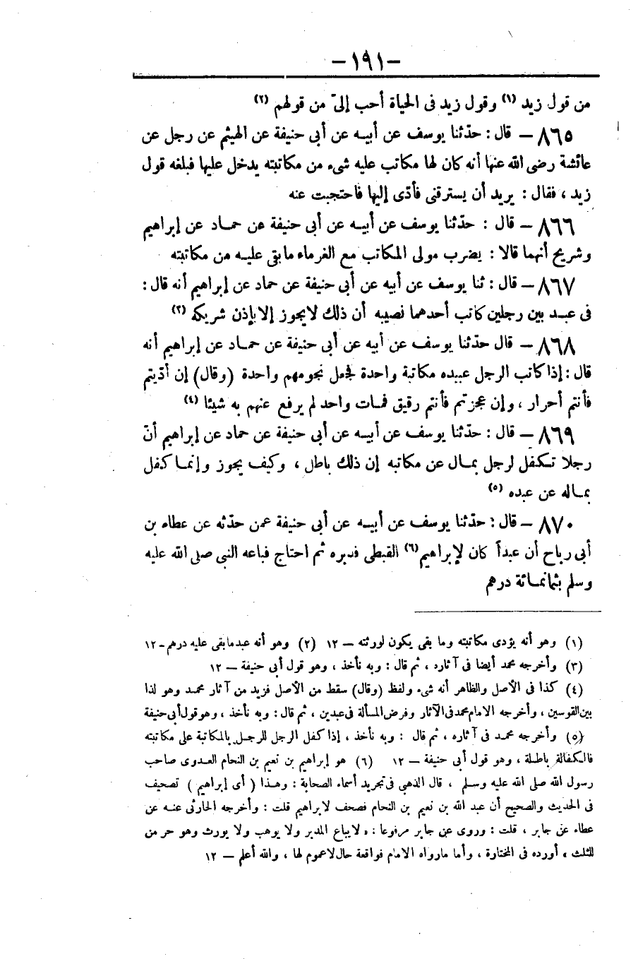 ٨٦٥ - قَالَ: حَدَّثَنَا يُوسُفُ عَنْ أَبِيهِ عَنْ أَبِي حَنِيفَةَ، عَنِ الْهَيْثَمِ، عَنْ رَجُلٍ، عَنْ عَائِشَةَ رَضِيَ اللَّهُ عَنْهَا، " أَنَّهُ كَانَ لَهَا مُكَاتَبٌ عَلَيْهِ شَيْءٌ مِنْ مُكَاتَبَتِهِ يَدْخُلُ عَلَيْهَا، فَبَلَغَهُ قَوْلُ زَيْدٍ، فَقَالَ: يُرِيدُ أَنْ يَسْتَرِقَّنِي، فَأَدَّى إِلَيْهَا فَاحْتَجَبَتْ عَنْهُ "