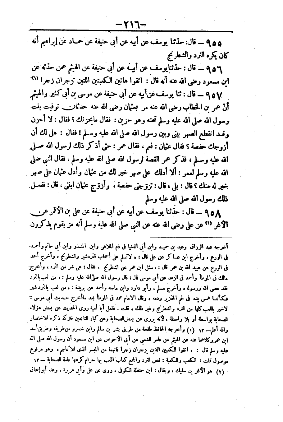 ٩٥٥ - قَالَ: حَدَّثَنَا يُوسُفُ عَنْ أَبِيهِ عَنْ أَبِي حَنِيفَةَ، عَنْ حَمَّادٍ، عَنْ إِبْرَاهِيمَ، «أَنَّهُ كَانَ يَكْرَهُ النَّرْدَ وَالشِّطْرَنْجَ»