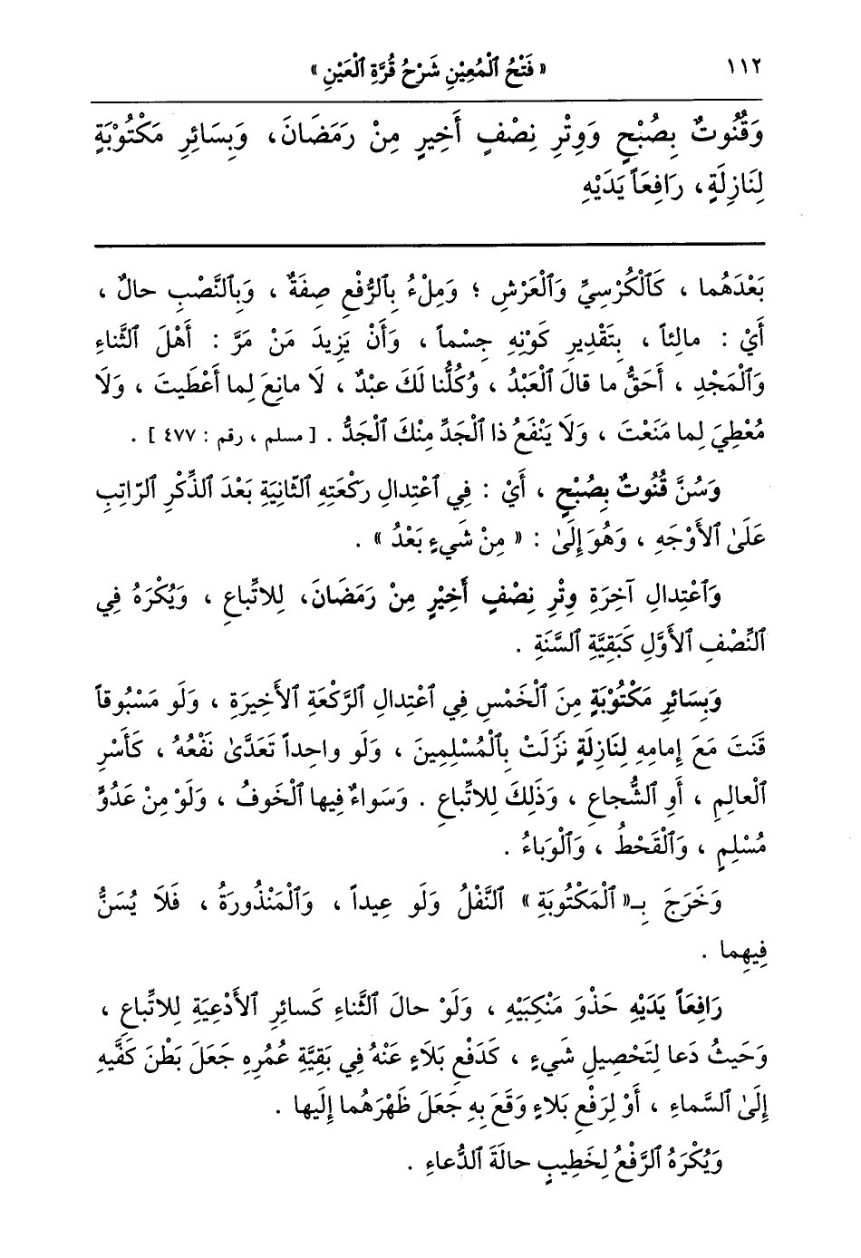 وقنوت بصبح ووتر نصف أخير من رمضان وبسائر مكتوبة لنازلة رافعا يديه