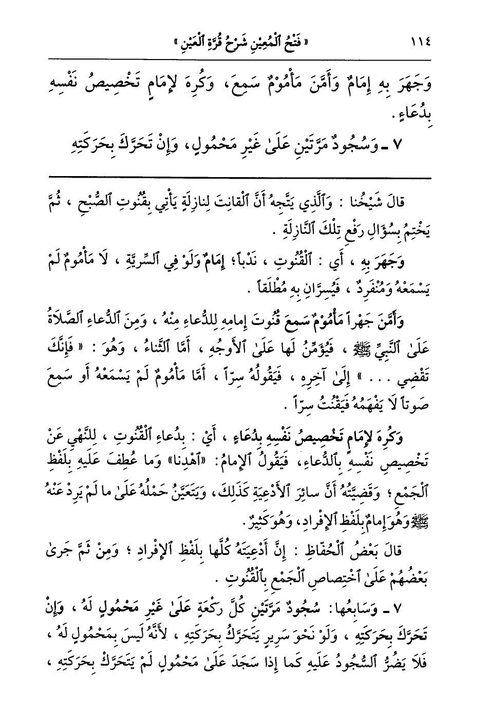 وجهر به أي القنوت ندبا إمام ولو في السرية لا مأموم لم يسمعه ومنفرد فيسران به مطلقا.