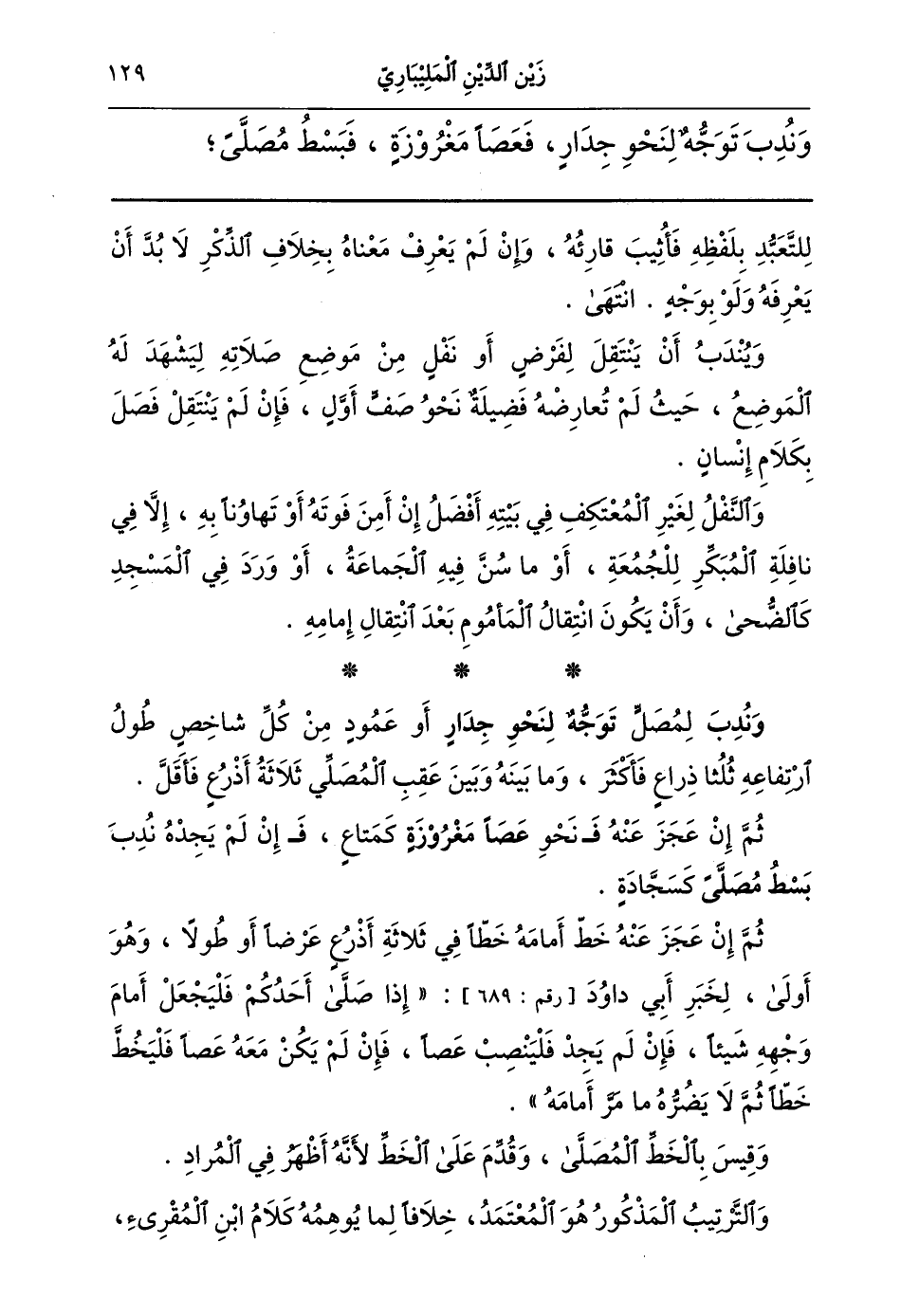 وندب توجه لنحو جدار فعصا مغروزة فبسط مصلى,