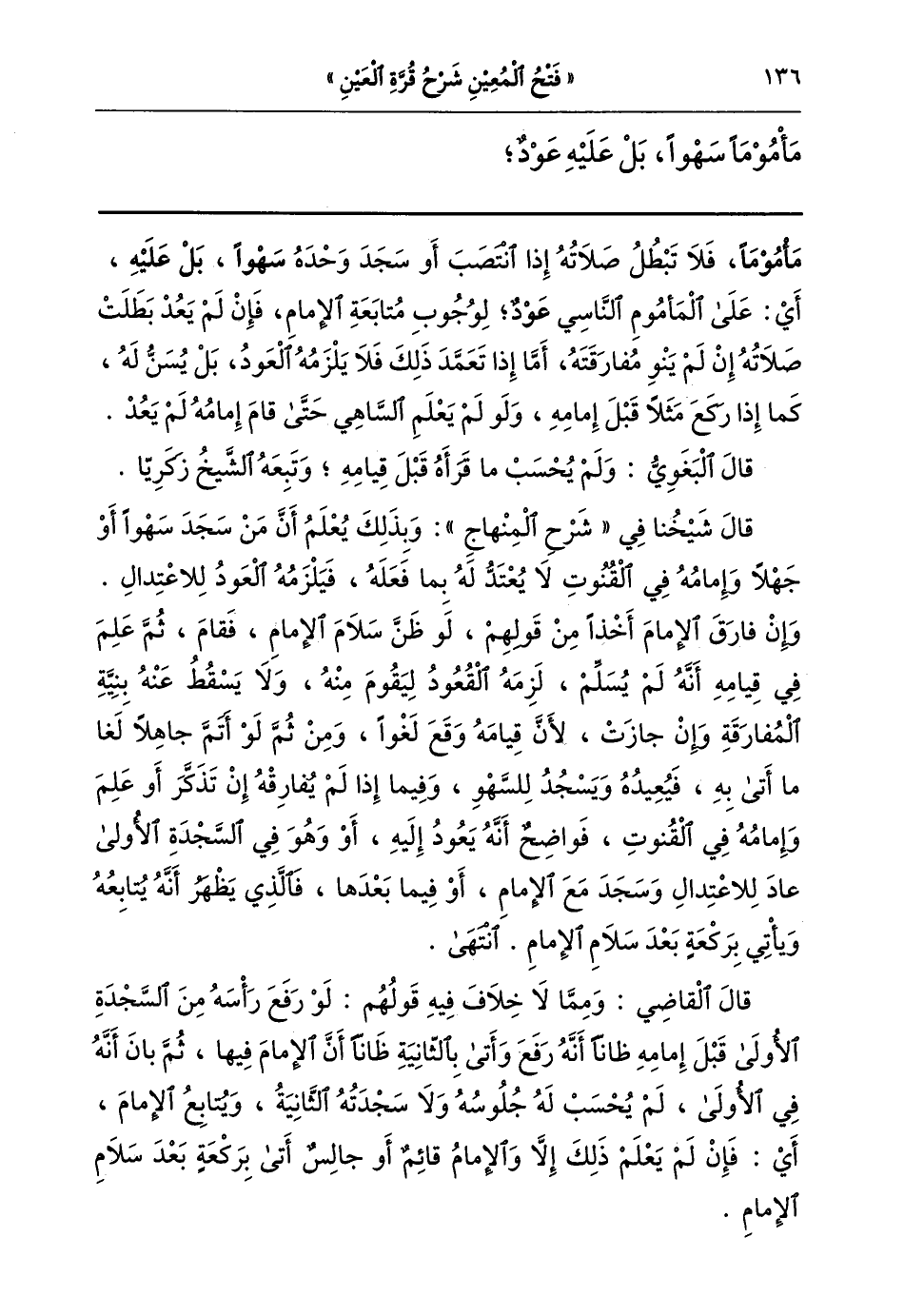 مأموما سهوا بل عليه عود,