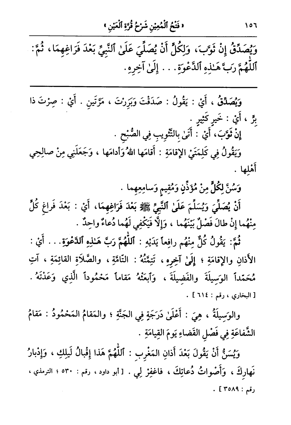 ويصدق إن ثوب ولكل أن يصلي على النبي صلى الله عليه وسلم بعد فراغهما ثم: اللهم رب هذه الدعوة إلى آخره.