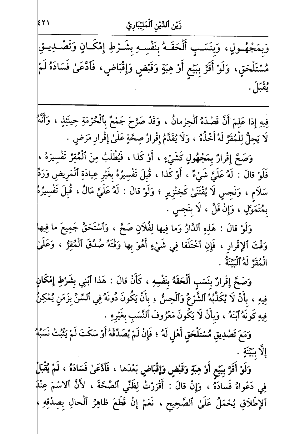 وبمجهول وبنسب ألحقه بنفسه بشرط إمكان وتصديق مستلحق ولو أقر ببيع أو هبة وقبض وإقباض فادعى فساده لم يقبل.